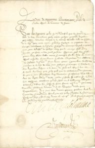 Charles de Lorraine, duc de MAYENNE (1554-1611), chef de la Ligue, il fut battu à Arques et Ivry par Henri IV, à qui il finit par se soumettre. P.S., Paris 19 novembre 1589 ; 1 page in-fol. avec cachet aux armes sous papier.