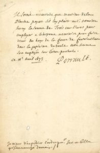 Charles PERRAULT (1628-1703),écrivain, auteur des Contes de ma mère l’Oye, contrôleur des bâtiments du Roi. L.A.S., 10 avril 1673, à M. de LA PLANCHE ; demi-page in-8.
