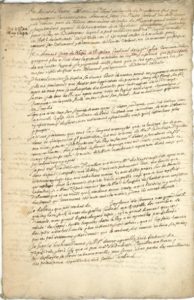 Testament reçu par le notaire Pierre Falconis. « Je Armand Jean du Plessis de Richelieu Cardinal de la Ste Eglise Romaine declare quayant pleu à Dieu dans la grande maladie en laquelle il a permis que je suis tombé de me laisser l’esprit & le jugement aussi sains que je les aye jamais eu, je me suis résolu de faire mon testament »…