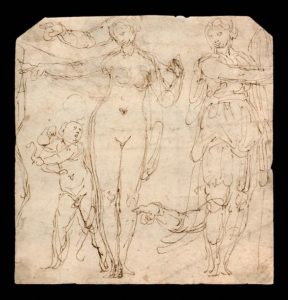 Attribué à Perino DEL VAGA (1501–1547) Vénus Plume et encre brune. Au verso : Etude de femme …
