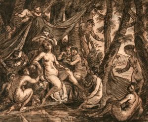 École Flamande du XVIIIe siècle Le Bain de Diane Plume et encre brune, sur traits de crayon …