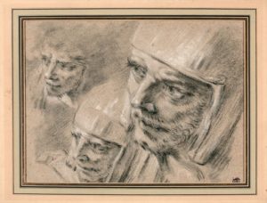 Atelier de François BOUCHER Trois études de visage Pierre noire et rehauts de craie blanche. …