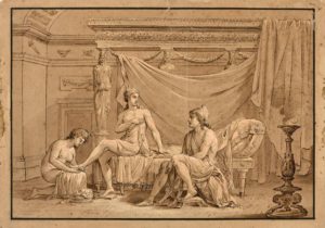 École Néo-classique Pâris et Hélène Plume et encre brune, lavis brun et rehauts de gouache …