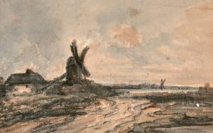 Georges MICHEL (1763–1843) Paysage au moulin Aquarelle. Haut. 11 - Larg. 17 cm Taches, coins …