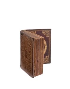[BIBLE]. • Psalmorvm Davidis paraphrasis poetica. Lutetiæ, Ex officina Roberti Stephani, M. D. LXXV [Paris, Robert Estienne, 1575]. •• […] Elegiarum Liber I. Sylvarvm Liber I. Endecasyllabon Lib. I. Parisiis, Ex officina Rob. Steph., Typographi, M. D. LXVII [Paris, Robert Estienne, 1567]. 2 ouvrages en un volume in-16 (75 x 121 mm), maroquin fauve, large décor doré à la fanfare ornant les plats, monogramme « t . i . m. » au centre du premier et « m . a . m. » au centre du second, dos lisse orné, doublure de maroquin brun ornée de fleurons d’angle et d’un médaillon portant l’inscription « Svbditvs // esto // Domino » au centre du premier et « et ora evm » au centre du second, tranches dorées