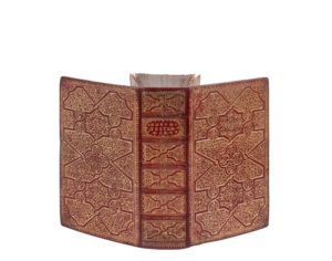 [BIBLE]. Nouum Testamentum. Ex Bibliotheca Regia. Lutetiæ, Ex officina Roberti Stephani Typographi Regii, 1569. In-16 (80 x 123 mm), maroquin rouge, plats entièrement ornés d’un décor doré aux petits fers, dos à nerfs orné du même décor, tranches dorées (reliure de l’époque).