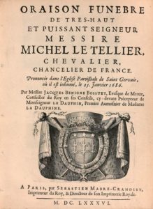 BOSSUET (Jacques Bénigne). Oraison funebre de […] Messire Michel le Tellier, chevalier, …