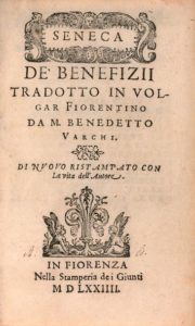 [SÉNÈQUE]. Seneca De Benefizzi. Tradotto in volgar Fiorentino da M. Benedetto Varchi. In …