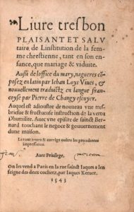 VIVES (Jean Louis). Liure tres bon, plaisant et salvtaire de linstitution de la femme chrestienne, …