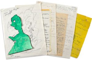 CHAISSAC Gaston (1910-1964) 6 L.A.S. « gaston chaissac » ou « chaissac » dont 5 avec dessin, Vix (Vendée) 1959-1962, à Enzo PAGANI ; plus une gouache signée ; 13 pages formats divers (3 lettres sur feuillet de cahier d’écolier), au stylo bille ou au crayon.