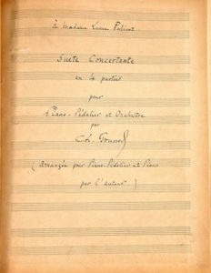 On joint le manuscrit autographe par Camille SAINT-SAËNS de la transcription de la partie de piano-pédalier pour piano, qui servira à la publication de la transcription de la Suite concertante pour piano et orchestre chez Alphonse Leduc (cahier de 24 pages in-fol. d’une écriture très soignée à l’encre noire sur papier Lard-Esnault à 16 lignes).