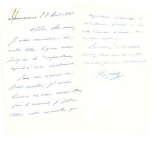 GAULLE Charles de (1890-1970) general, President de la Republique. 2 L.A.S. « C. de Gaulle », …