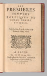 Les premières oeuvres poétiques de Jehan Grisel, Rouennois. A Rouen, de l’imprimerie de Raphaël du Petit Val, 1599. In-12 de 4 ff. prél., 136 pp. et 4 ff. non chiff., maroq. rouge, dos orné, riches comp. à petit fers, doublé de maroq. citron parsemé à l’infini de marguerites, gardes de moire bleu clair, doubles gardes, tr. dor., étui de maroq. vert et rouge (Lortic).