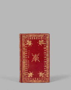 JOLIE ET FRAÎCHE RELIURE A DENTELLE DU XVIIIe SIECLE, SIGNEE D’UN ARTISAN RELIEUR LANGUEDOCIEN, sur lequel on ne possède aucun autre document. Cette reliure a été reproduite hors texte par Léon Gruel dans son manuel de l’amateur de reliures (vol. II, face p. 162).