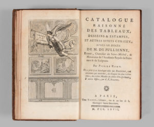 Catalogue raisonné des Tableaux, desseins et estampes, et autres effets curieux, après le décès de M. de Julienne… Par Pierre Rémy. On a joint à ce Catalogue celui des Porcelaines, des Laques les plus recherchées, des riches Meubles du célèbre Ebéniste Boule, et autres Effets, par C. F. Julliot. P., chez Vente, 1767. 2 parties en un volume in-12 d’un frontispice, XX, 316 et 80 pp.ch., 1 f.n.ch. veau anc., dos orné, tr. r. (Rel. de l’époque).