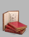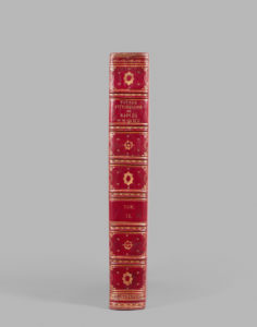 Voyage pittoresque, ou Description des Royaumes de Naples et de Sicile… Paris, s.n. (Imprimerie Clousier), 1781-1786. 4 volumes infolio (511 x 337 mm), rel. pleine maroq. rouge, dos à 6 nerfs ornés, large grecque entourant les plats, dent. int., tr. dor., roulette sur les coupes, garde de tabis bleu (Reliure de l’époque).