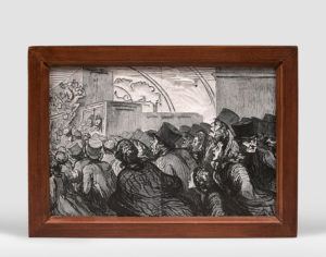 Les Voyageurs du dimanche. 1862. Matrice originale du bois ayant servi à l’impression d’une illustration du journal « Le Monde illustré » (No du 3 mai 1862). Graveur sur bois : C. Maurand.