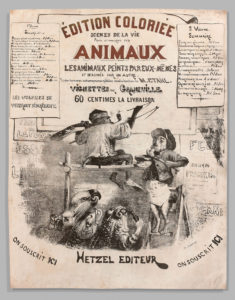 AFFICHE DE LIBRAIRIE pour Jérôme Paturot à la recherche d’une position sociale de Louis Reybaud, parue chez Hetzel et Paulin en 1846, imprimée par Villain.