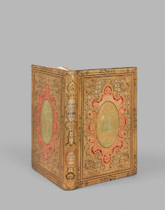 L’été à Bade. Paris, Furne et Cie, Bourdin, s.d. [1847]. Grand in-8, reliure pleine, chagr. vert, dos et plats entièrement couvert d’une plaque dorée avec composition ovale différente sur chaque plat, tranches dorées (Reliure de l’éditeur).