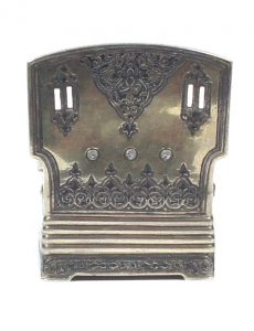 En vermeil et argent niellé. Monogramme Ap au dos de la chaise xixème siècle. Porte les ponçons : 1) titre - 84, Moscou; 2) société P. Ovtchinnikov; 3) l'essayeur Bc, 1872. Poids brut - 131 gr, haut. - 7,3 cm (Usures)