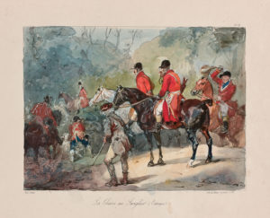 SUITE COMPLÈTE, composée de deux séries de 10 pl., au total 20 lithographies originales à la plume et au crayon par Eugène Lami, exécutées de 1828 à 1832. «Cette représentation de la vie mondaine n’est pas imaginée et faite de chic, Lami, très répandu dans les salons les plus fermés, était accueilli chez les d’Osmond, les Vaufreland, les Delessert, les de Mouchy, etc.» (Beraldi, 278 à 298 – A. Lemoisne, pp. 376 et 383).