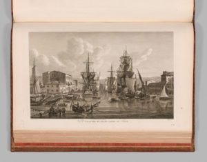 Très bel ouvrage, orné d’un titre gravé, renfermant un frontispice, une grande carte double, 3 vignettes d’en-tête, 167 pp. de texte et tables, 65 planches (dont 5 numérotées en bis) pour la plupart très belles Vues, certaines avec bateaux (Pirano, Pola, Spalato, Trieste…), dessinées par Cassas et gravées par Charpentier, Chenu, Duparc, Filhol, Levée, Liénard, Masquelier, Niquet, Paris, Pillement, Reville…