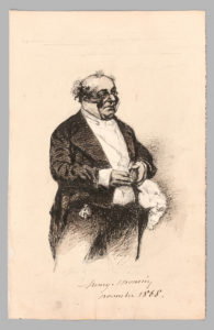SUITE COMPLÈTE de 42 lithographies originales de Monnier (Beraldi, 329-370) coloriées à l’époque des plus spirituelles et des plus intéressantes pour l’histoire des moeurs «sorte de monographie de la Grisette qui est l’oeuvre la plus originale et la plus piquante d’Henry Monnier» dit Henri Beraldi. L’exemplaire a été enrichi d’un beau dessin original, plume et lavis, autoportrait d’Henry Monnier, signé et daté :1868 et d’une L.a.s.