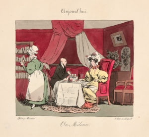 2 pl. pour chaque sujet opposant XVIII et XIXe siècle. «Dans cette série Monnier a fait preuve d’une élégance et d’une finesse toutes particulières. Les personnages du passé qu’il met en scène agissent et se meuvent avec adresse, sans rappeler la boutique de Babin» écrit Champfleury.