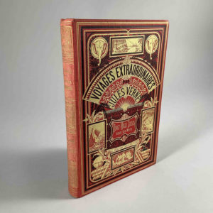 Jules Verne, Vingt-mille Lieues sous les Mers. — Paris, Hetzel, sd. Catalogue BR (1884). — Lenègre relieur. — Cartonnage rouge aux deux éléphants, dos passé, quelques rousseurs.