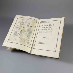 [Foujita] Thomas Raucat, L’honorable partie de campagne. — Paris, Gallimard NRF, 1927. — In-4, 223p. — Jolie édition illustrée par Foujita, un des 320 sur vélin d’Arches.