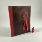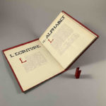 chemise. — 13 feuillets tapuscrit sur les différentes écritures avec titre et lettrine à la gouache. 36 feuillets d’exemples d’écritures et signes divers : indiens, chinois, zodiaque, alphabets divers, plaquettes collées de caractères d’imprimerie divers. — Soit 50 feuillets en tout sous chemise demi-chagrin avec plats en bois, monogramme à la cire HL sur le premier plat.