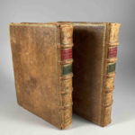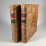 Reliures plein veau légèrement postérieures (ca.1800), un mors entièrement fendus, deux mors partiellement fendus, coiffes arasées, coins usés.