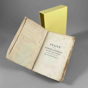[Dentisterie] Baumes, Traité de la première dentition et des maladies souvent très graves qui en dépendent. — Paris, Méquignon, 1806. In-8, [4]-LII-350p. — Edition originale.
