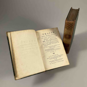 [Dentisterie] Jourdain, Traité des maladies et opérations réellement chirurgicales de la bouche. — Paris, Valleyre, 1778. 2 volumes in-8, [4]-XLVIII-535-[1]p et [4]-662-[2]p et 7 planches. Edition originale. Demi-basane, pièces de titre et...