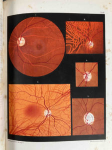 [Ophtalmologie] Richard Liebreich, Atlas d'ophtahalmoscopie représentant l'état normal et les modifications pathologiques du fond de l'oeil visibles à l’ophthalmoscope. Paris, Germer Baillière, 1863. X-42p et 12 planches. Première édition de...