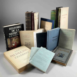 [Histoire de la Médecine] 18 volumes dont Vie de Pasteur, Broussais, institut Pasteur, Péan, Histoire de la médecine, a medical bibliography (avec annotations), etc.
