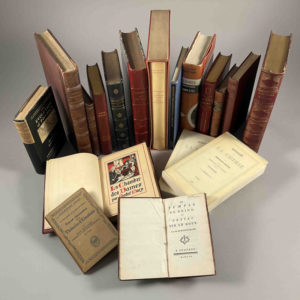 électrons, la relativité (certains en anglais), Montesquieu (temple de Gnide, 1760), Théorie physiologique de la musique, La chambre des Dames d’André Mary (relié par Aussourd), Ariel de Maurois (plein maroquin de Toulet), etc. Bon lot.