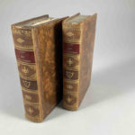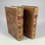 Plein basane racinée, dos orné, pièces de titre et tomaison, tranches marbrées. Trois coiffes abîmées.