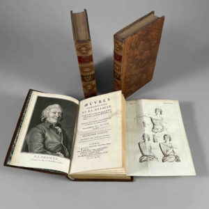 [Médecine, autographe] Œuvres chirurgicales de P.J. Desault, ouvrage publié par Xavier Bichat son élève. Paris, Desault, Méquignon, Devilliers, Deroi, 1798. 3 volumes in-8, front.-[4]-VIII-410-[3]p, [4]-528p et XIV-439-[1]p et 13 planches.