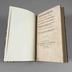 [Médecine] Georges Dupuytren, Propositions sur quelques points d’anatomie, de physiologie et d’anatomie pathologique. Paris, imp de Migneret, an XII - 1803. In-8, 32p. Rare plaquette, cartonnage plein papier moderne.