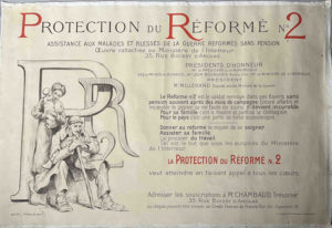 Protection du Réformé N°2", Assistance aux Malades et Blessés de la Guerre, Réformés sans Affiche par La Lithographie Parisienne, Paris, 1915. Hauteur : 80 cm. Largeur : 119,5 cm. (Accidents, entoilée).