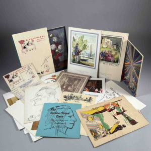 [GASTRONOMIE] Réunion d'environ 32 CARTES et MENUS dont : - PROJET DE MENU manuscrit avec dessins originaux à l'encre du Restaurant Chaumette, 7, rue Gros à Paris. Avec un dessin original à la mine de plomb du chef et un menu tapuscrit du 16...