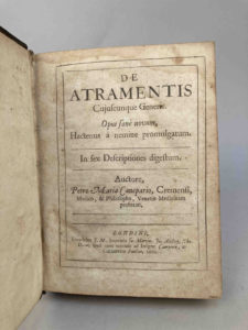 CANEPARI, Pietro Maria. De Atramentis cujuscumque Generis | Opus sane novum, hactenus a nemine promulgatum | In sex Descriptiones digestum | Auctore, Petro Maria Canepario, Cremensi, Medico, & Philosopho, Venetiis Medicinam profitenti; Londres, J....