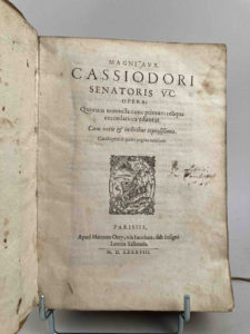 CASSIODORUS, Aurelius. Magni Aur. Cassiodori Senatoris V.C. Opera : Quorum nonnulla nunc primum reliqua emendatiora eduntur. Cum notis & indicibus copiosissimis.; Paris, Marc Orry, 1588. In-4°, plein vélin à recouvrements, lacets. (Petits manques...