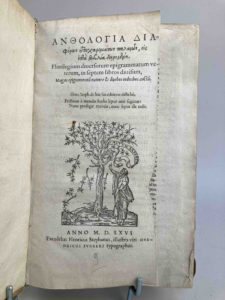 (Renouard, page 126 "Très savant volume". Schreiber, n°159:"Important edition of the Greek Anthology").