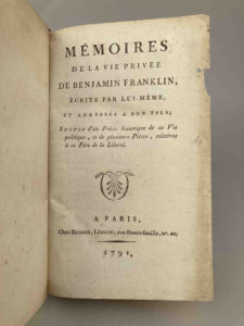 FRANKLIN, Benjamin. Mémoires de la vie privée de Benjamin Franklin, écrits par lui-même, et adressés à son fils, suivis d’un Précis historique de sa Vie politique, et de plusieurs pièces, relatives à ce Père de la Liberté Paris, Buisson,...