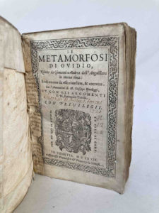 OVIDE. Le Metamorfosi di Ovidio, Ridotte da Giovanni Andrea dall’ Anguillara in ottava rima. Venise, Francesco de Franceschi Sanese. 1572. Petit in-8. 209 ff-(2 ff) d’index.