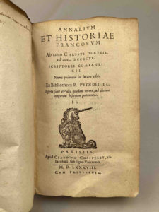 PITHOU, Pierre (1539-1596). Annalium et Historiae Francorum | Ab anno Christi DCCVIII. ad ann. DCCCCXC | Scriptores coætanei XII. | Nunc primum in lucem editi | Ex Bibliotheca P. Pithoei. Paris, Claude Chappelet, 1588 2 parties en 1 vol. in-8, (6...