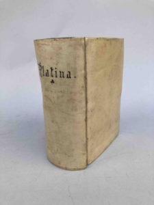 PLATINA, Bartolomeo Battista de Sacchi, dit (1421-1481). La historia delle vite de Pontefici di Battista Platina, laquale comincia da Christo. Sans lieu. 1583. Fort in-12, 574 feuillets.