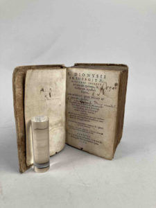 PSEUDO-DENYS L'AEROPAGITE (VIème siècle). S. Dionysii Areopagitæ Martyris Incliti Athenarum episcopi, & Galliarum Apostoli Opera | Cum Epistoliis SS. Ignatii Policarpi & Martialis Apostoli | Translatio nova Ambrosii Florentini Paris, Michel...